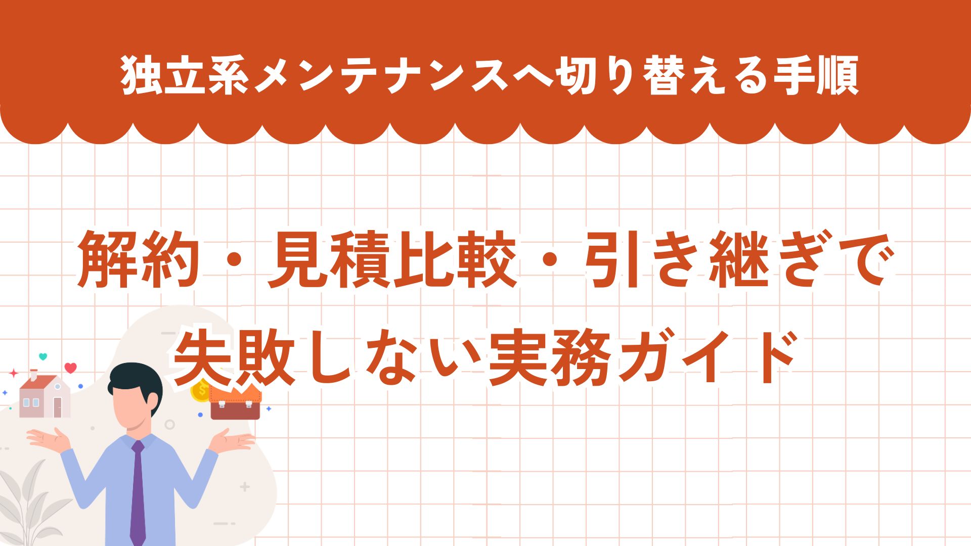 独立系メンテナンスへ切り替える手順|解約・見積比較・引き継ぎで失敗しない実務ガイド