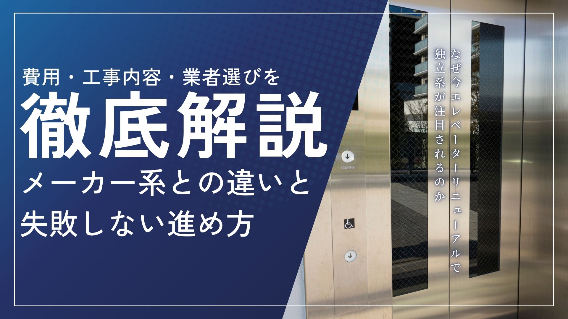独立系のエレベーターリニューアル(更新)は、メーカー系と比べて工期・更新範囲・費用設計を柔軟に組めるケースがある一方、会社ごとに提案の方向性が違うため「どこが最適か」は物件条件で変わります。