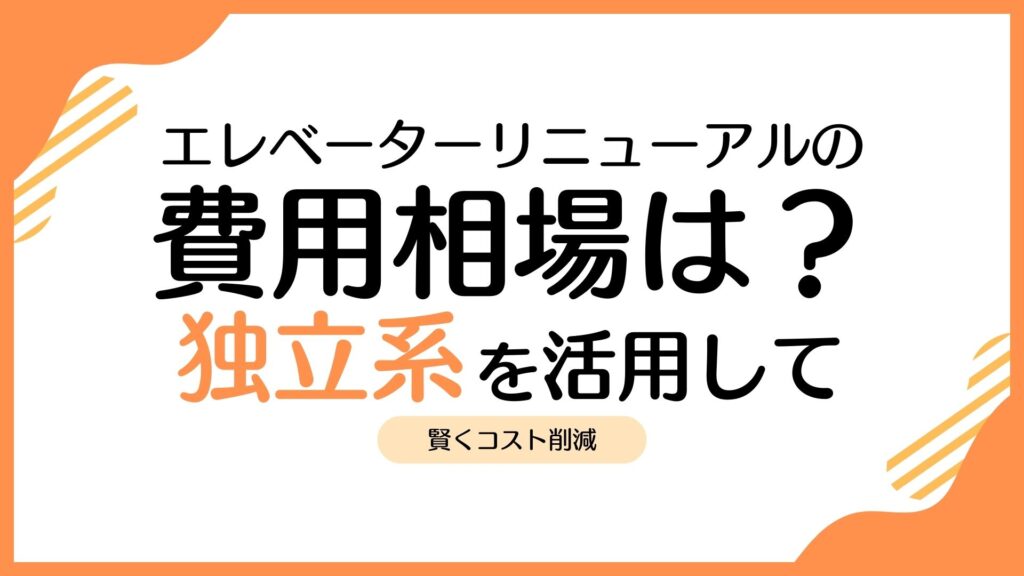 エレベーターリニューアルの費用相場は?独立系を活用して賢くコスト削減